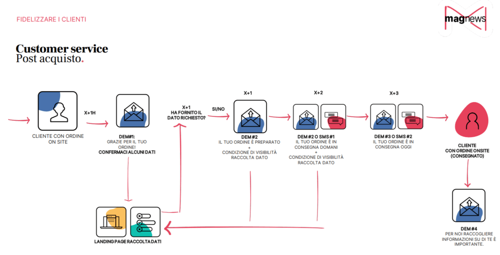 Esempio di descrizione di un flusso post acquisto che si può realizzare con la Marketing Automation